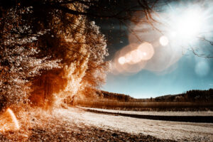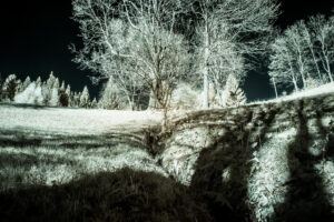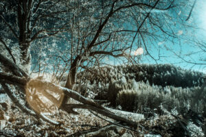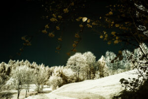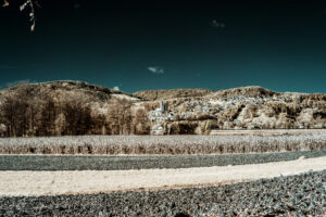 Bei den Farben selbst handelt es sich hier um ein sogenanntes „Falschfarbenbild“ da diese hier dazu dienen, dass für uns eigentlich unsichtbare Infrarotlicht sichtbar zu machen. Diese Methode wird übrigens auch in der Astronomie angewendet. Ebenso ist sie für Landschaftsfotografie sehr gut geeignet, da der feine Dunst in der Atmosphäre gut durchdrungen wird.